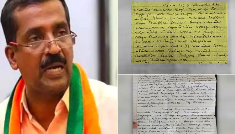 തിരുവനന്തപുരം (Thiruvananthapuram) : ബിജെപി നേതാവും കൗൺസിലറുമായ തിരുമല അനിലിന്റെ ആത്മഹത്യാ കുറിപ്പ് പുറത്തുവന്നു. അനിൽ പ്രസിഡന്റായ ഫാം ടൂർ സഹകരണസംഘത്തിന്റെ സാമ്പത്തിക പ്രതിസന്ധി കത്തിൽ വിവരിക്കുന്നു. (BJP leader and councilor Thirumala Anil’s suicide note has been released. In the letter, Anil describes the financial crisis of the Farm Tour Cooperative Society, of which he is the president.) നമ്മുടെ ആൾക്കാരെ സഹായിച്ചുവെന്നും അവർ പല അവധി പറഞ്ഞ് തിരിച്ചടയ്ക്കൽ മുടക്കുന്നുവെന്നും കത്തിൽ പരാമർശമുണ്ട്.