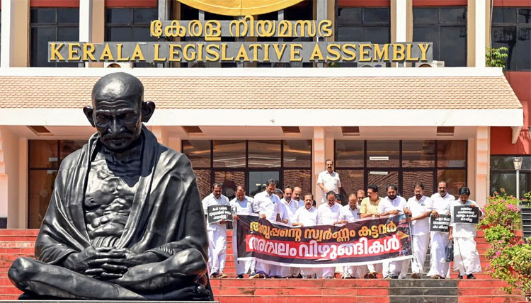 തിരുവനന്തപുരം (Thiruvananthapuram) : ശബരിമലയിലെ സ്വർണപ്പാളി വിവാദത്തിൽ നിയമസഭയിൽ പ്രതിപക്ഷ പ്രതിഷേധം ശക്തമാകുന്നു. (Opposition protests are intensifying in the Assembly over the Sabarimala gold temple controversy.) പിന്നോട്ടില്ലെന്ന നിലപാടിൽ ഉറച്ച് നിൽക്കുകയാണ് പ്രതിപക്ഷം. പ്രതിഷേധത്തെ തുടർന്ന് മൂന്നാം ദിവസവും നിയമസഭാ നടപടികൾ സ്തംഭിപ്പിച്ചു.